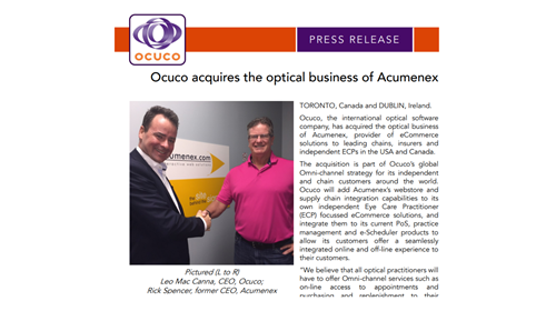 TORONTO, Canada and DUBLIN, Ireland – Ocuco has acquired the optical business of Acumenex, provider…
